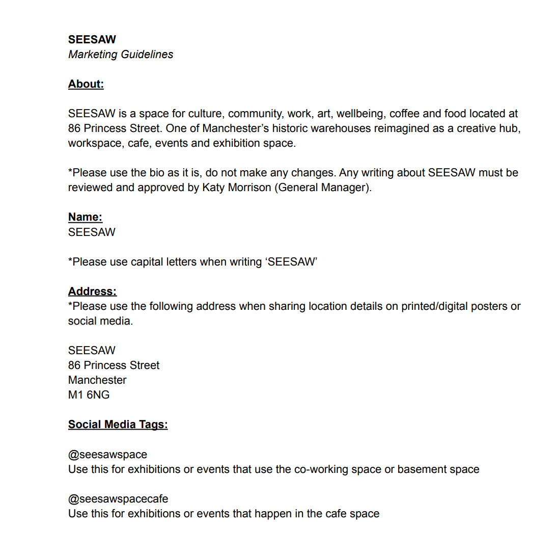 Securing the space meant we could begin planning the exhibition and create a realistic schedule for us and the artists. It also meant we could create an online presence and begin marketing the event. SEESAW provided us with the space and marketing agreements.