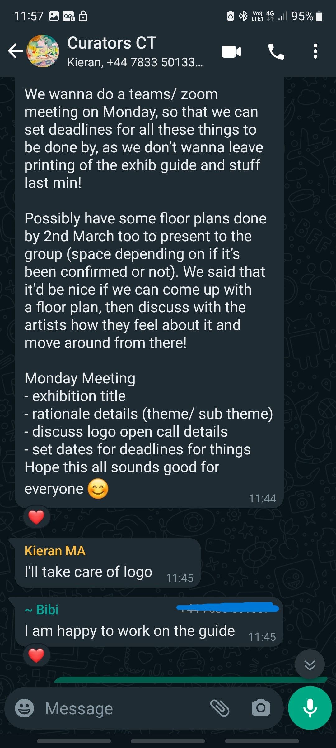 Myself: Setting up the google drive and spreadsheet. Exhibition guide design.